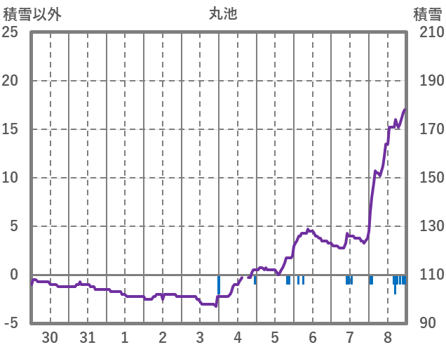 | 日 | 時 | 気温 | 降水 | 風向/風速 | 日照 | 積雪 | 降雪 |