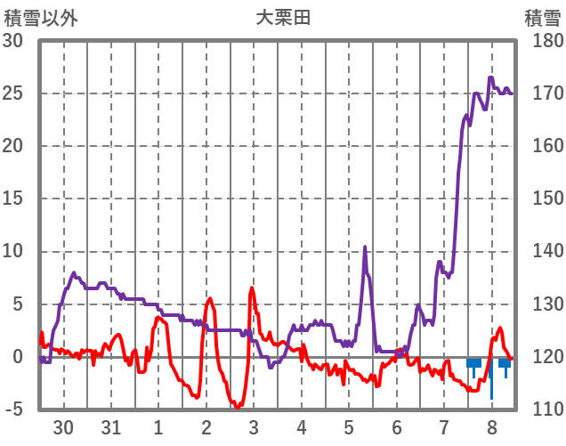 | 日 | 時 | 気温 | 降水 | 風向/風速 | 日照 | 積雪 | 降雪 |
