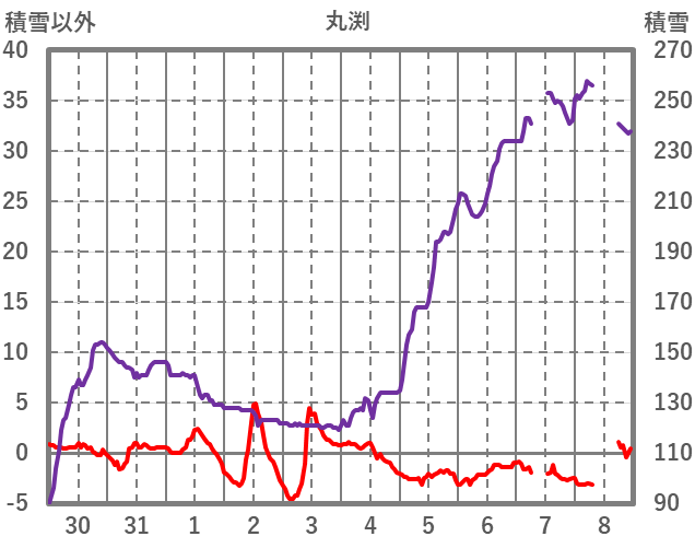 | 日 | 時 | 気温 | 降水 | 風向/風速 | 日照 | 積雪 | 降雪 |