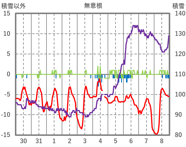 | 日 | 時 | 気温 | 降水 | 風向/風速 | 日照 | 積雪 | 降雪 |