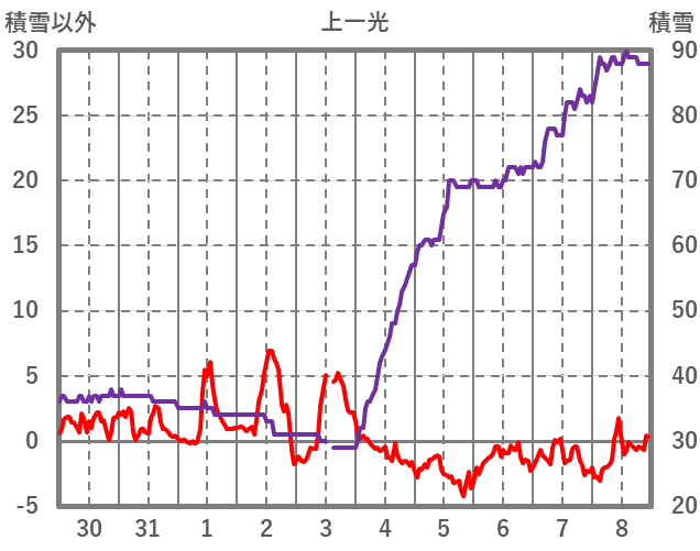| 日 | 時 | 気温 | 降水 | 風向/風速 | 日照 | 積雪 | 降雪 |