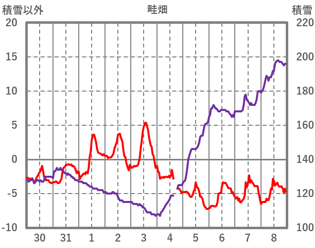 | 日 | 時 | 気温 | 降水 | 風向/風速 | 日照 | 積雪 | 降雪 |