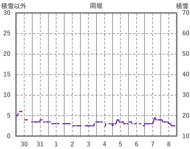 | 日 | 時 | 気温 | 降水 | 風向/風速 | 日照 | 積雪 | 降雪 |