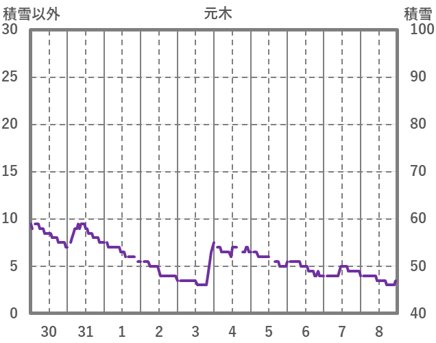 | 日 | 時 | 気温 | 降水 | 風向/風速 | 日照 | 積雪 | 降雪 |