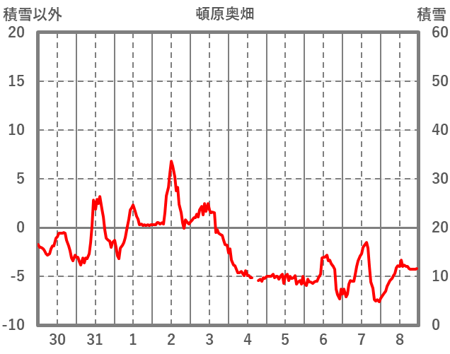 | 日 | 時 | 気温 | 降水 | 風向/風速 | 日照 | 積雪 | 降雪 |