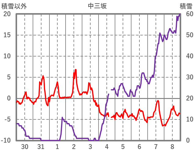 | 日 | 時 | 気温 | 降水 | 風向/風速 | 日照 | 積雪 | 降雪 |
