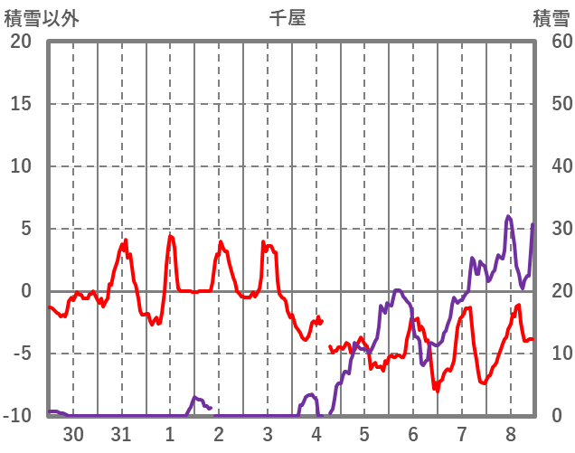 | 日 | 時 | 気温 | 降水 | 風向/風速 | 日照 | 積雪 | 降雪 |