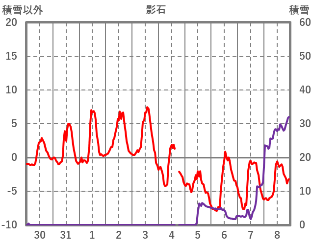 | 日 | 時 | 気温 | 降水 | 風向/風速 | 日照 | 積雪 | 降雪 |