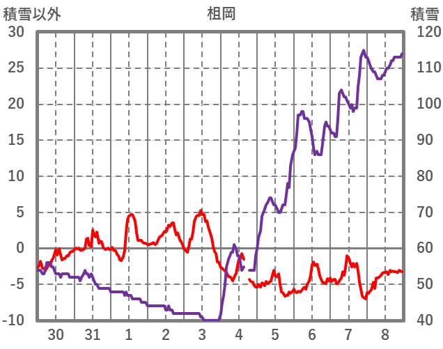 | 日 | 時 | 気温 | 降水 | 風向/風速 | 日照 | 積雪 | 降雪 |