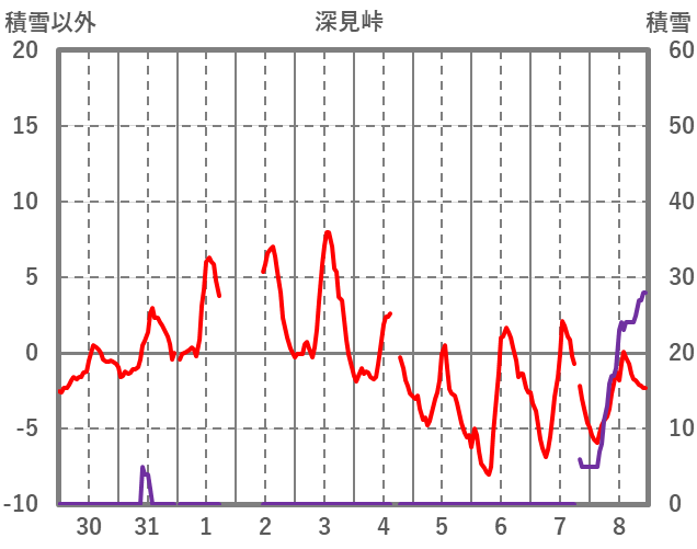 | 日 | 時 | 気温 | 降水 | 風向/風速 | 日照 | 積雪 | 降雪 |
