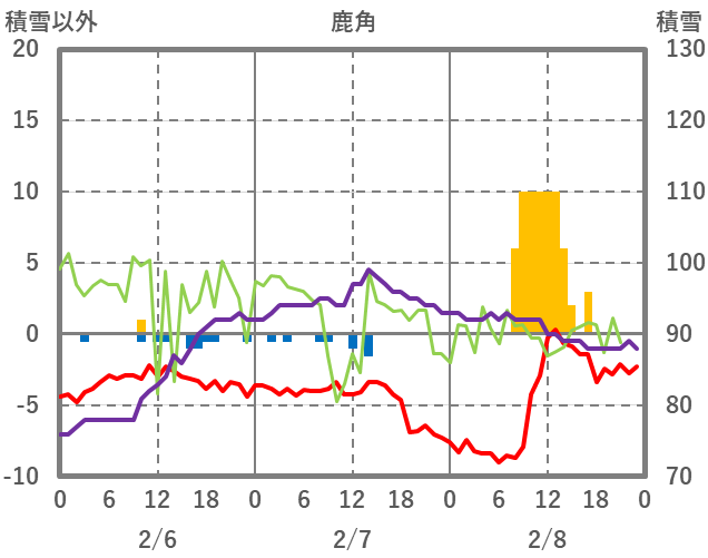 | 日 | 時 | 気温 | 降水 | 風向/風速 | 日照 | 積雪 | 降雪 |
