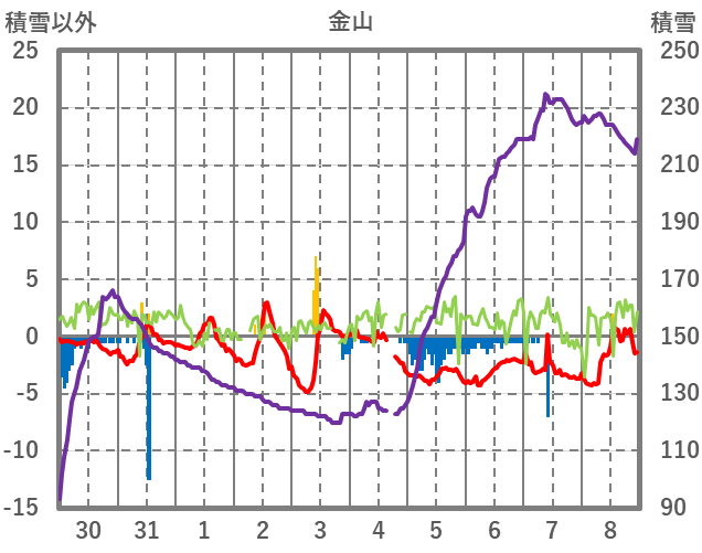 | 日 | 時 | 気温 | 降水 | 風向/風速 | 日照 | 積雪 | 降雪 |