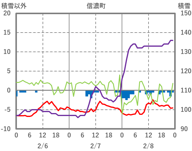 | 日 | 時 | 気温 | 降水 | 風向/風速 | 日照 | 積雪 | 降雪 |