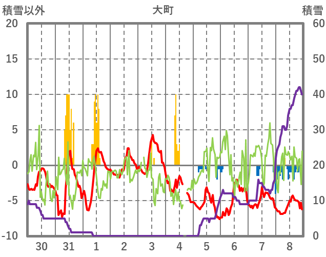 | 日 | 時 | 気温 | 降水 | 風向/風速 | 日照 | 積雪 | 降雪 |