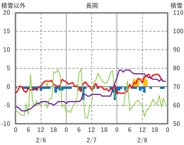 | 日 | 時 | 気温 | 降水 | 風向/風速 | 日照 | 積雪 | 降雪 |
