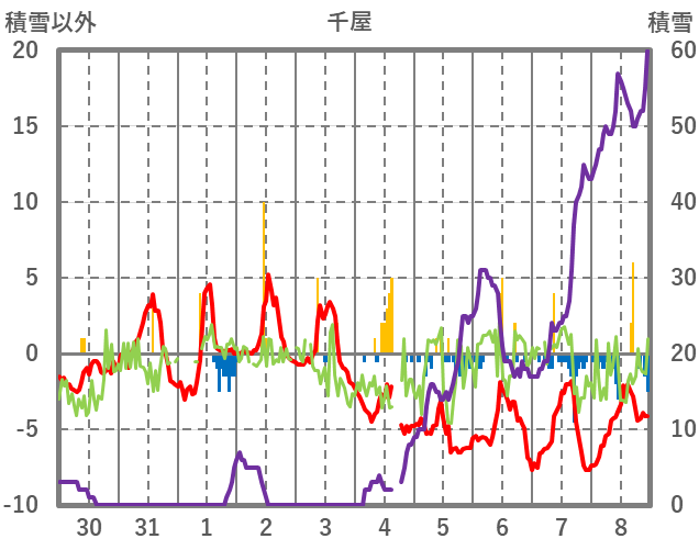 | 日 | 時 | 気温 | 降水 | 風向/風速 | 日照 | 積雪 | 降雪 |