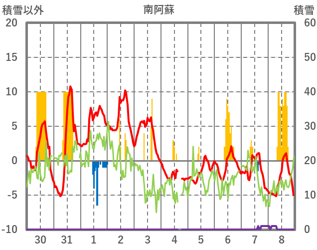| 日 | 時 | 気温 | 降水 | 風向/風速 | 日照 | 積雪 | 降雪 |
