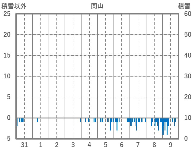 | 日 | 時 | 気温 | 降水 | 風向/風速 | 日照 | 積雪 | 降雪 |