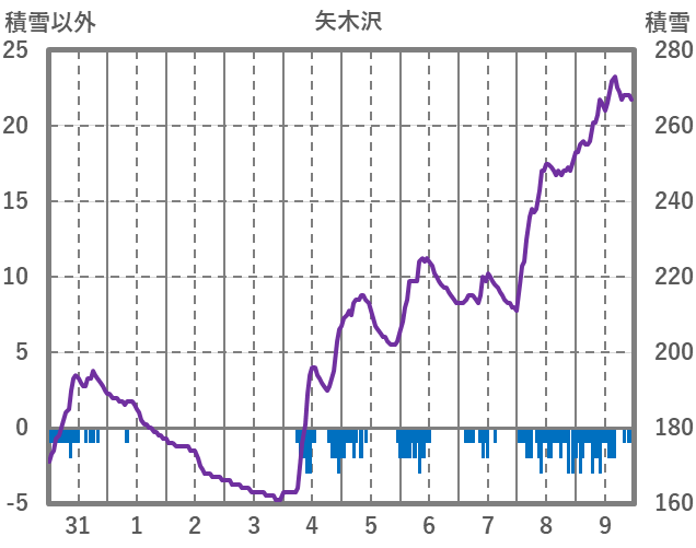 | 日 | 時 | 気温 | 降水 | 風向/風速 | 日照 | 積雪 | 降雪 |