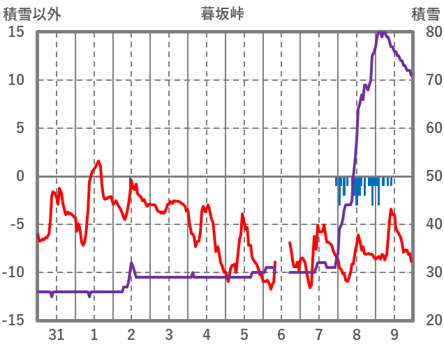 | 日 | 時 | 気温 | 降水 | 風向/風速 | 日照 | 積雪 | 降雪 |