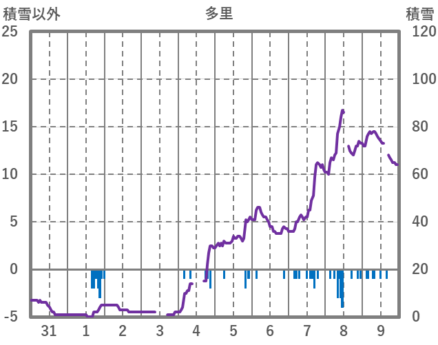 | 日 | 時 | 気温 | 降水 | 風向/風速 | 日照 | 積雪 | 降雪 |