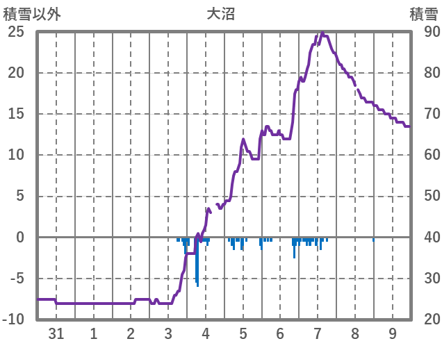 | 日 | 時 | 気温 | 降水 | 風向/風速 | 日照 | 積雪 | 降雪 |