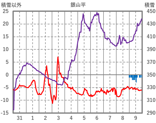 | 日 | 時 | 気温 | 降水 | 風向/風速 | 日照 | 積雪 | 降雪 |