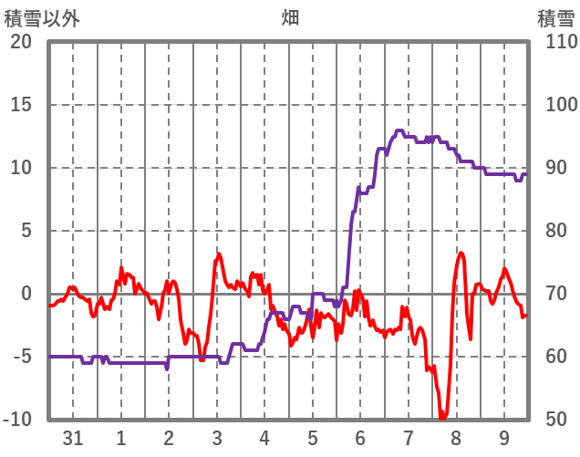 | 日 | 時 | 気温 | 降水 | 風向/風速 | 日照 | 積雪 | 降雪 |