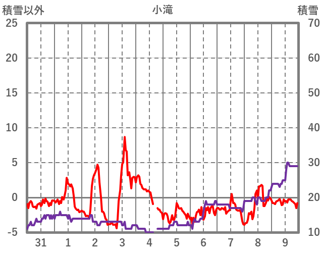 | 日 | 時 | 気温 | 降水 | 風向/風速 | 日照 | 積雪 | 降雪 |