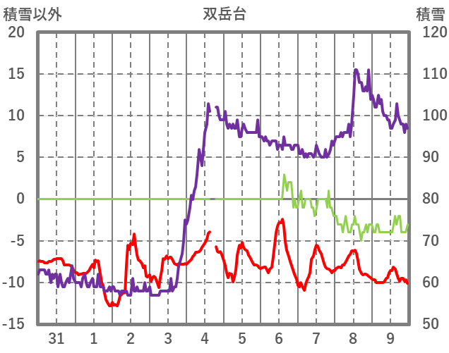 | 日 | 時 | 気温 | 降水 | 風向/風速 | 日照 | 積雪 | 降雪 |