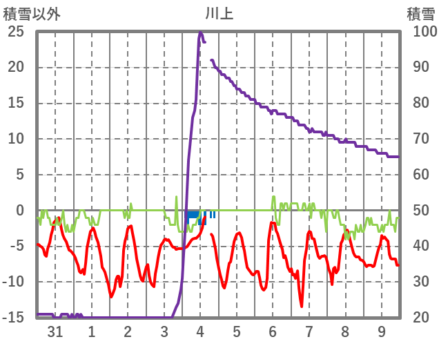 | 日 | 時 | 気温 | 降水 | 風向/風速 | 日照 | 積雪 | 降雪 |