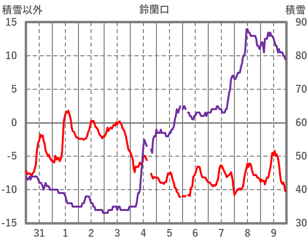| 日 | 時 | 気温 | 降水 | 風向/風速 | 日照 | 積雪 | 降雪 |