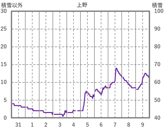 | 日 | 時 | 気温 | 降水 | 風向/風速 | 日照 | 積雪 | 降雪 |