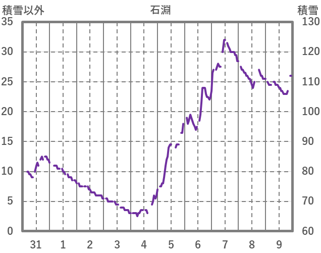 | 日 | 時 | 気温 | 降水 | 風向/風速 | 日照 | 積雪 | 降雪 |