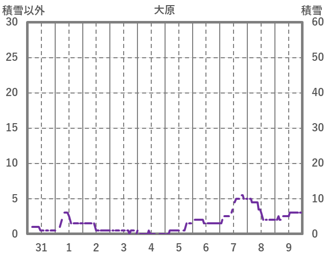 | 日 | 時 | 気温 | 降水 | 風向/風速 | 日照 | 積雪 | 降雪 |