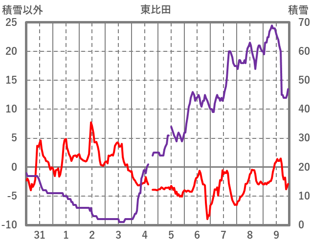 | 日 | 時 | 気温 | 降水 | 風向/風速 | 日照 | 積雪 | 降雪 |