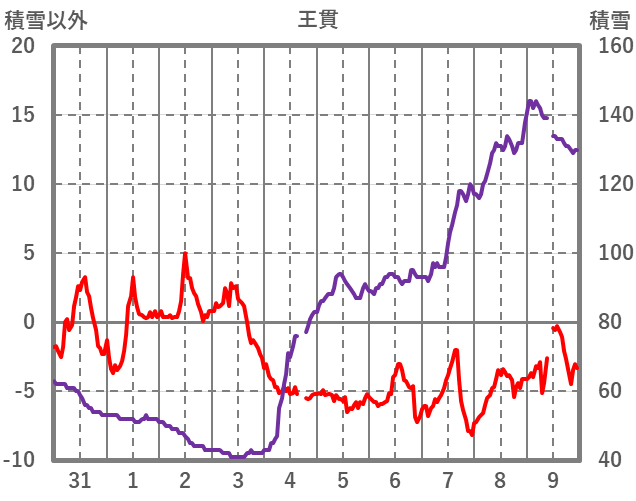 | 日 | 時 | 気温 | 降水 | 風向/風速 | 日照 | 積雪 | 降雪 |