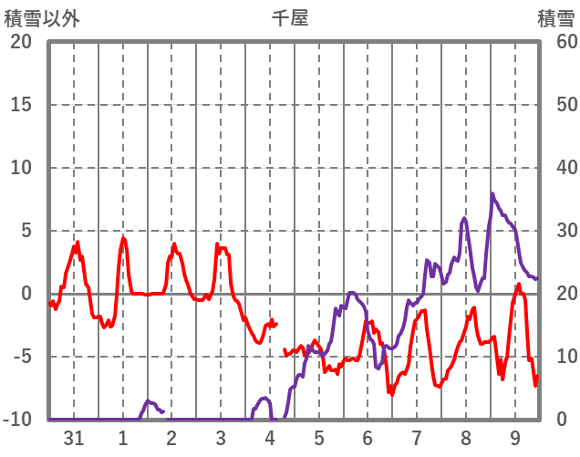 | 日 | 時 | 気温 | 降水 | 風向/風速 | 日照 | 積雪 | 降雪 |