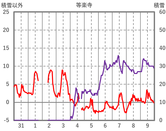 | 日 | 時 | 気温 | 降水 | 風向/風速 | 日照 | 積雪 | 降雪 |