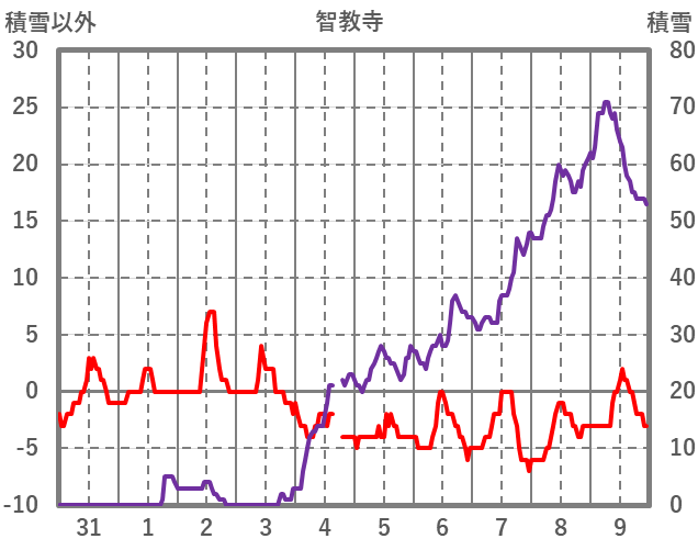 | 日 | 時 | 気温 | 降水 | 風向/風速 | 日照 | 積雪 | 降雪 |