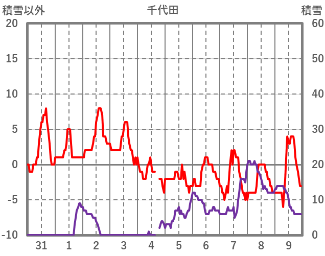 | 日 | 時 | 気温 | 降水 | 風向/風速 | 日照 | 積雪 | 降雪 |