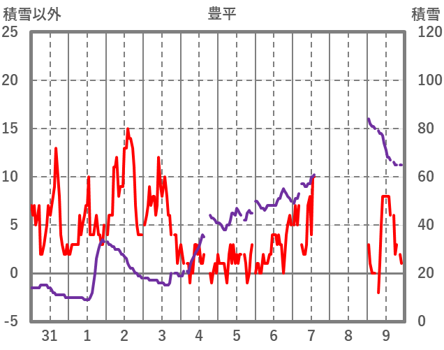 | 日 | 時 | 気温 | 降水 | 風向/風速 | 日照 | 積雪 | 降雪 |