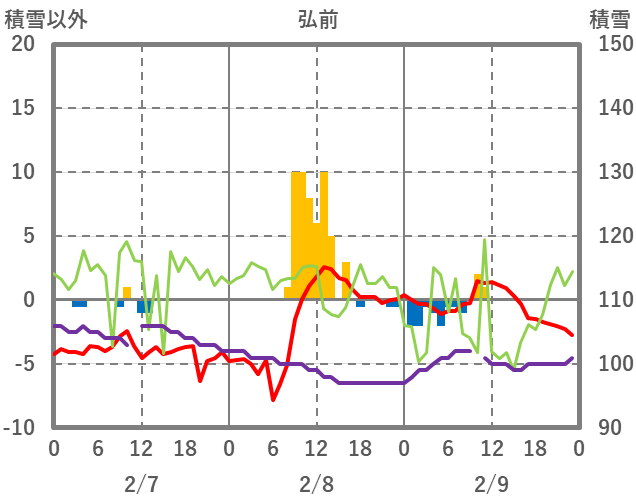 | 日 | 時 | 気温 | 降水 | 風向/風速 | 日照 | 積雪 | 降雪 |