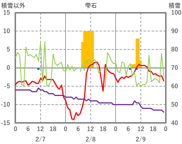 | 日 | 時 | 気温 | 降水 | 風向/風速 | 日照 | 積雪 | 降雪 |