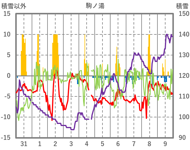 | 日 | 時 | 気温 | 降水 | 風向/風速 | 日照 | 積雪 | 降雪 |