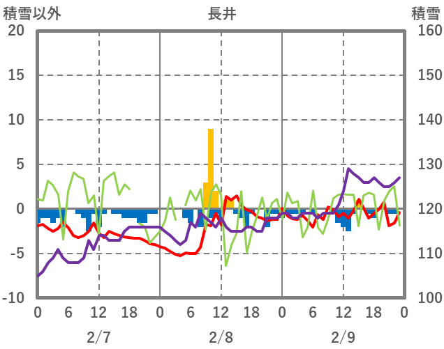 | 日 | 時 | 気温 | 降水 | 風向/風速 | 日照 | 積雪 | 降雪 |