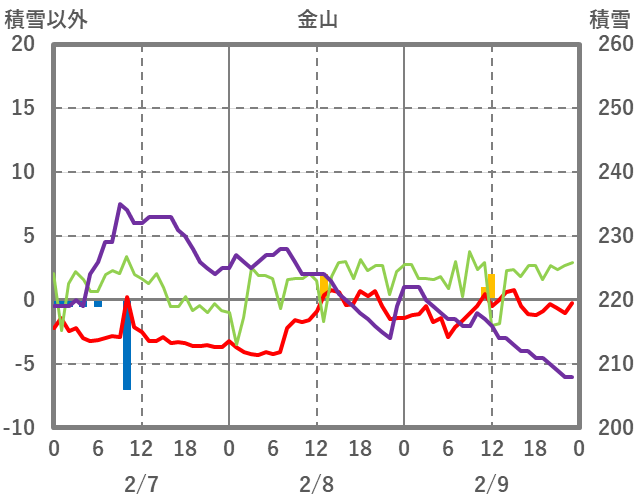 | 日 | 時 | 気温 | 降水 | 風向/風速 | 日照 | 積雪 | 降雪 |