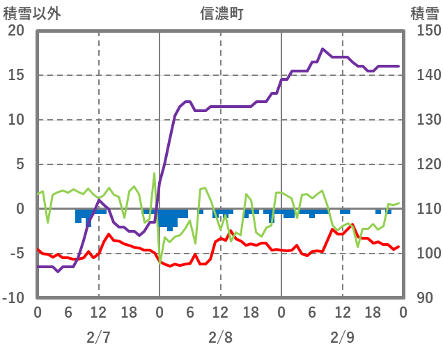 | 日 | 時 | 気温 | 降水 | 風向/風速 | 日照 | 積雪 | 降雪 |