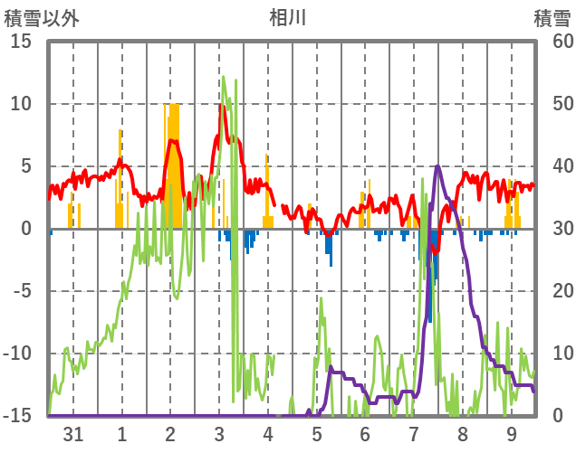 | 日 | 時 | 気温 | 降水 | 風向/風速 | 日照 | 積雪 | 降雪 |