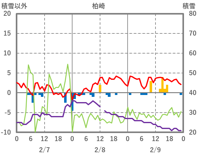 | 日 | 時 | 気温 | 降水 | 風向/風速 | 日照 | 積雪 | 降雪 |